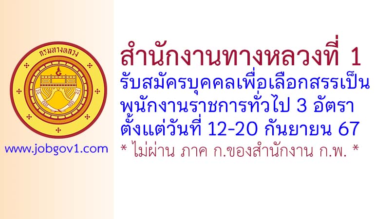 สำนักงานทางหลวงที่ 1 รับสมัครบุคคลเพื่อเลือกสรรเป็นพนักงานราชการทั่วไป 3 อัตรา ตั้งแต่วันที่ 12-20 กันยายน 2567