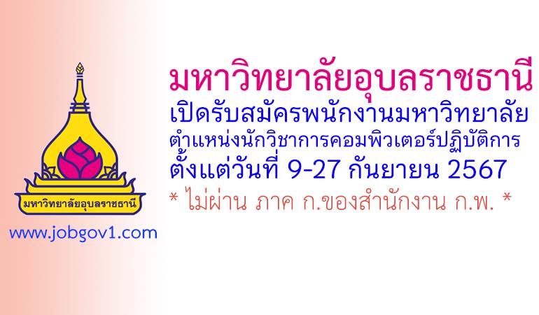 มหาวิทยาลัยอุบลราชธานี รับสมัครพนักงานมหาวิทยาลัย ตำแหน่งนักวิชาการคอมพิวเตอร์ปฏิบัติการ ตั้งแต่วันที่ 9-27 กันยายน 2567