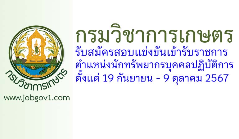 กรมวิชาการเกษตร รับสมัครสอบแข่งขันเข้ารับราชการ ตำแหน่งนักทรัพยากรบุคคลปฏิบัติการ ตั้งแต่ 19 กันยายน – 9 ตุลาคม 2567