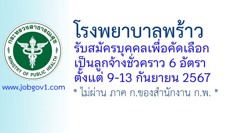 โรงพยาบาลพร้าว รับสมัครบุคคลเพื่อสรรหาเป็นลูกจ้างชั่วคราว 6 อัตรา ตั้งแต่วันที่ 9-13 กันยายน 2567