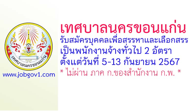 เทศบาลนครขอนแก่น รับสมัครบุคคลเพื่อสรรหาและเลือกสรรเป็นพนักงานจ้างทั่วไป 2 อัตรา ตั้งแต่วันที่ 5-13 กันยายน 2567