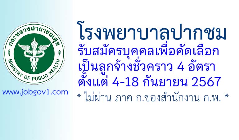 โรงพยาบาลปากชม รับสมัครลูกจ้างชั่วคราว 4 อัตรา ตั้งแต่วันที่ 4-18 กันยายน 2567