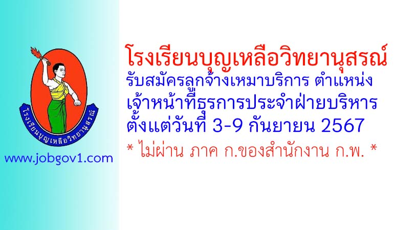โรงเรียนบุญเหลือวิทยานุสรณ์ รับสมัครลูกจ้างเหมาบริการ ตำแหน่งเจ้าหน้าที่ธุรการประจำฝ่ายบริหาร ตั้งแต่วันที่ 3-9 กันยายน 2567