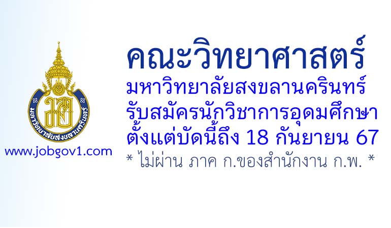 คณะวิทยาศาสตร์ มหาวิทยาลัยสงขลานครินทร์ รับสมัครนักวิชาการอุดมศึกษา ตั้งแต่บัดนี้ถึง 18 กันยายน 2567