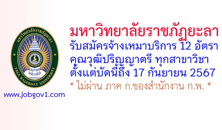 มหาวิทยาลัยราชภัฏยะลา รับสมัครจ้างเหมาบริการ 12 อัตรา ตั้งแต่บัดนี้ถึง 17 กันยายน 2567