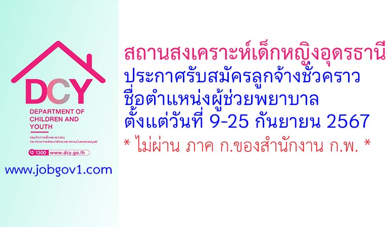 สถานสงเคราะห์เด็กหญิงอุดรธานี รับสมัครลูกจ้างชั่วคราว ตำแหน่งผู้ช่วยพยาบาล ตั้งแต่วันที่ 9-25 กันยายน 2567