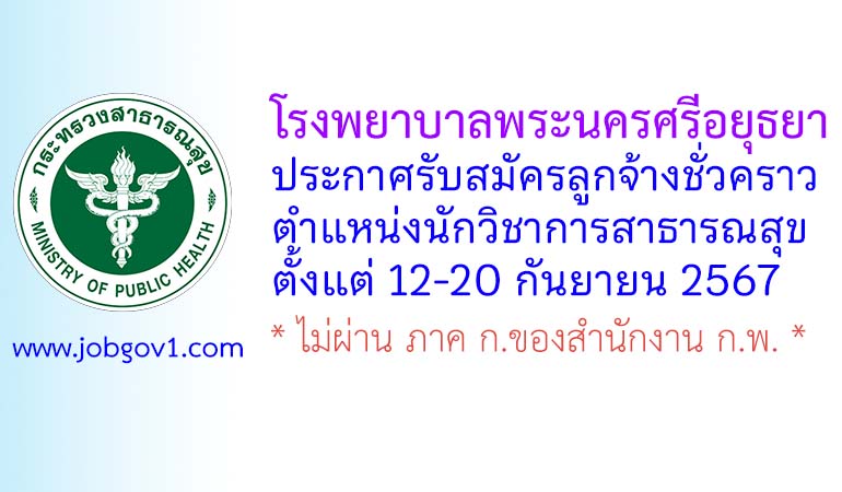 โรงพยาบาลพระนครศรีอยุธยา รับสมัครลูกจ้างชั่วคราว ตำแหน่งนักวิชาการสาธารณสุข ตั้งแต่วันที่ 12-20 กันยายน 2567
