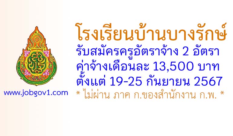 โรงเรียนบ้านบางรักษ์ รับสมัครครูอัตราจ้าง 2 อัตรา ตั้งแต่วันที่ 19-25 กันยายน 2567