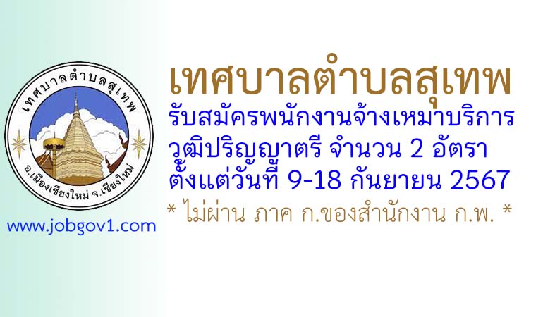 เทศบาลตำบลสุเทพ รับสมัครพนักงานจ้างเหมาบริการ 2 อัตรา ตั้งแต่วันที่ 9-18 กันยายน 2567