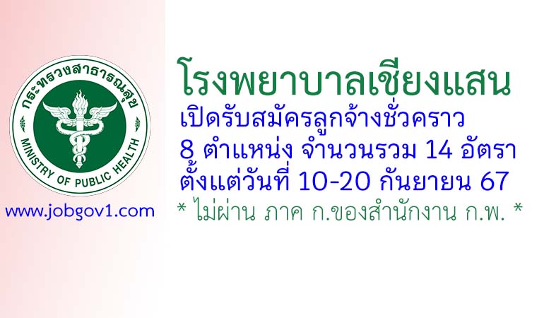โรงพยาบาลเชียงแสน รับสมัครบุคคลเพื่อสรรหาและเลือกสรรเป็นลูกจ้างชั่วคราว 14 อัตรา ตั้งแต่วันที่ 10-20 กันยายน 2567