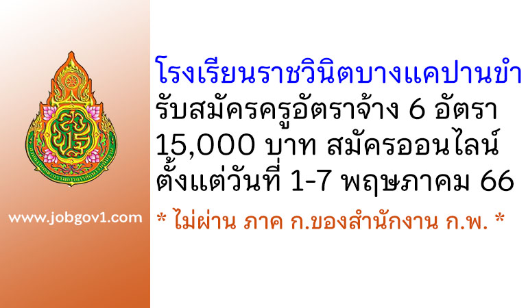โรงเรียนราชวินิตบางแคปานขำ รับสมัครครูอัตราจ้าง 6 อัตรา ตั้งแต่วันที่ 1-7 พฤษภาคม 2566