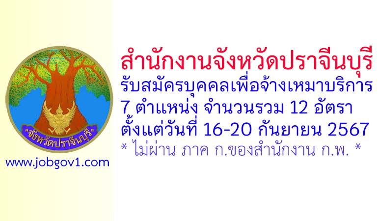 สำนักงานจังหวัดปราจีนบุรี รับสมัครบุคคลเพื่อจ้างเหมาบริการ 12 อัตรา ตั้งแต่วันที่ 16-20 กันยายน 2567