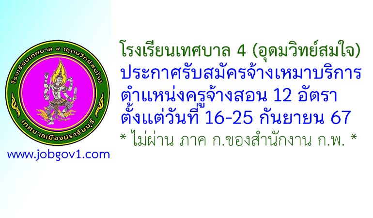 โรงเรียนเทศบาล 4 (อุดมวิทย์สมใจ) รับสมัครจ้างเหมาบริการ ตำแหน่งครูจ้างสอน 12 อัตรา ตั้งแต่วันที่ 16-25 กันยายน 2567