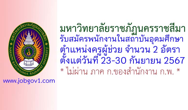 มหาวิทยาลัยราชภัฏนครราชสีมา รับสมัครพนักงานในสถาบันอุดมศึกษา ตำแหน่งครูผู้ช่วย จำนวน 2 อัตรา ตั้งแต่วันที่ 23-30 กันยายน 2567