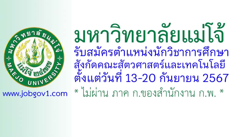 คณะสัตวศาสตร์และเทคโนโลยี มหาวิทยาลัยแม่โจ้ รับสมัครตำแหน่งนักวิชาการศึกษา ตั้งแต่วันที่ 13-20 กันยายน 2567