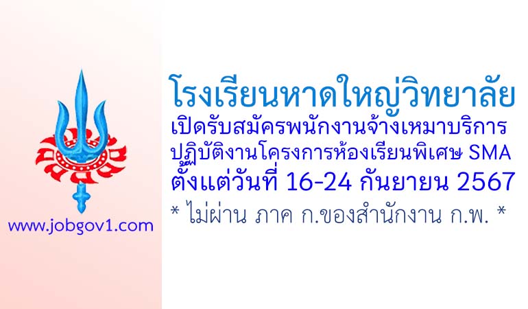 โรงเรียนหาดใหญ่วิทยาลัย รับสมัครพนักงานจ้างเหมาบริการ ปฏิบัติงานโครงการห้องเรียนพิเศษ SMA ตั้งแต่วันที่ 16-24 กันยายน 2567