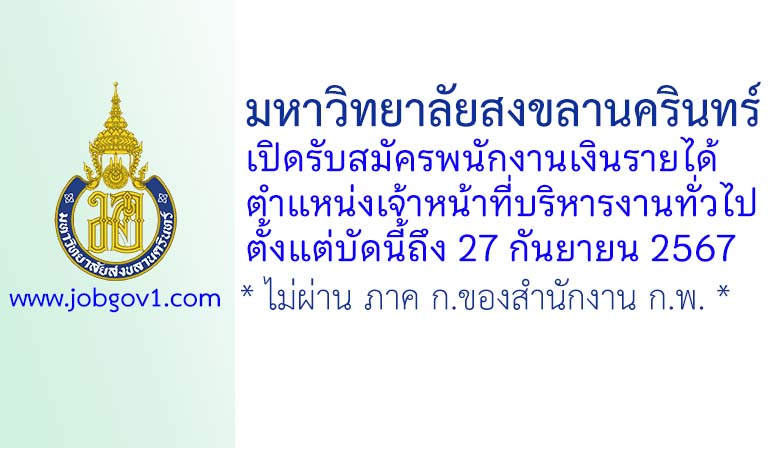 มหาวิทยาลัยสงขลานครินทร์ รับสมัครพนักงานเงินรายได้ ตำแหน่งเจ้าหน้าที่บริหารงานทั่วไป ตั้งแต่บัดนี้ถึง 27 กันยายน 2567