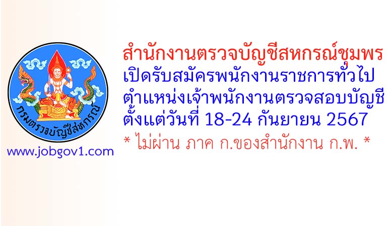 สำนักงานตรวจบัญชีสหกรณ์ชุมพร รับสมัครพนักงานราชการทั่วไป ตำแหน่งเจ้าพนักงานตรวจสอบบัญชี ตั้งแต่วันที่ 18-24 กันยายน 2567