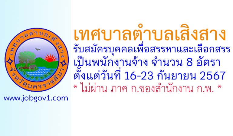 เทศบาลตำบลเสิงสาง รับสมัครบุคคลเพื่อสรรหาและเลือกสรรเป็นพนักงานจ้าง 8 อัตรา ตั้งแต่วันที่ 16-23 กันยายน 2567