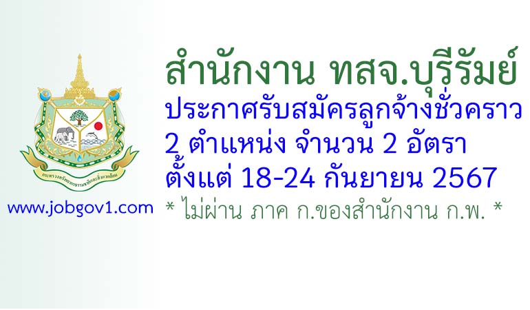 สำนักงาน ทสจ.บุรีรัมย์ รับสมัครลูกจ้างชั่วคราว 2 อัตรา ตั้งแต่วันที่ 18-24 กันยายน 2567