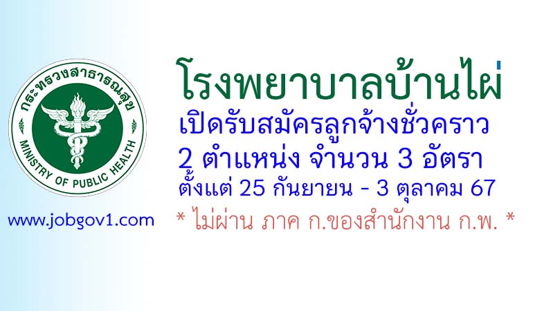โรงพยาบาลบ้านไผ่ รับสมัครลูกจ้างชั่วคราว 3 อัตรา ตั้งแต่ 25 กันยายน – 3 ตุลาคม 2567
