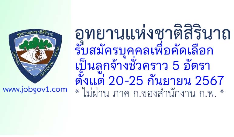 อุทยานแห่งชาติสิรินาถ รับสมัครลูกจ้างชั่วคราว 5 อัตรา ตั้งแต่วันที่ 20-25 กันยายน 2567