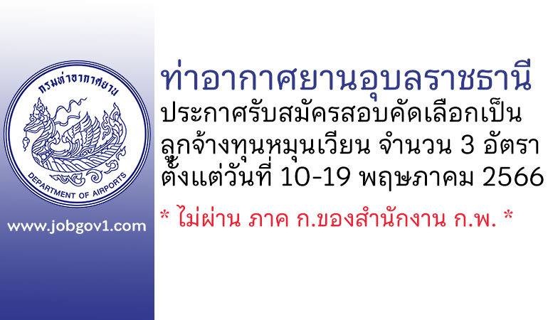 ประกาศกรมท่าอากาศยาน เรื่อง รับสมัครสอบคัดเลือกบุคคลเพื่อเลือกสรรและจัดจ้างเป็นลูกจ้างทุนหมุนเวียนในตำแหน่งต่าง ๆ ปฏิบัติงานที่ ท่าอากาศยานอุบลราชธานี
