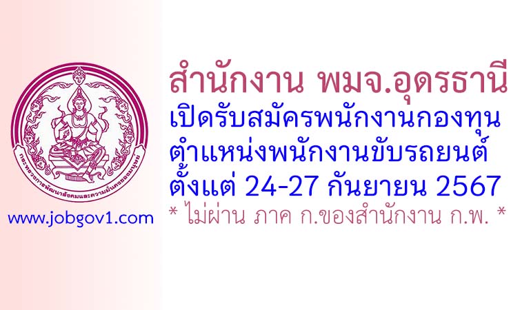 สำนักงาน พมจ.อุดรธานี รับสมัครพนักงานกองทุน ตำแหน่งพนักงานขับรถยนต์ ตั้งแต่วันที่ 24-27 กันยายน 2567
