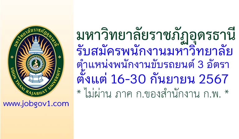 มหาวิทยาลัยราชภัฏอุดรธานี รับสมัครพนักงานมหาวิทยาลัย ตำแหน่งพนักงานขับรถยนต์ 3 อัตรา ตั้งแต่วันที่ 16-30 กันยายน 2567