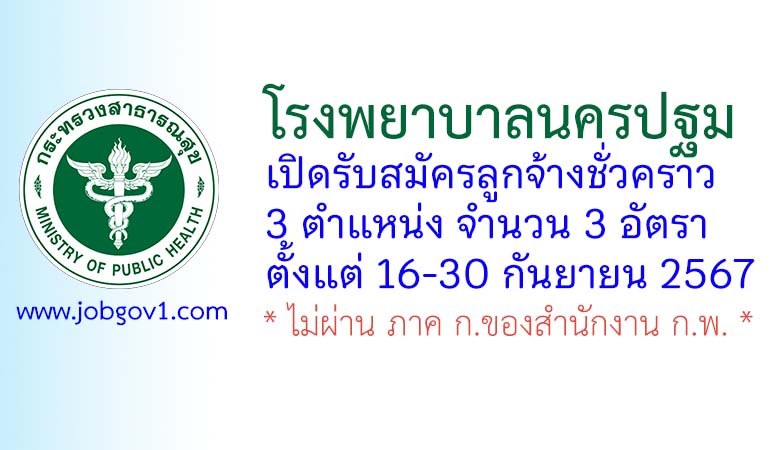 โรงพยาบาลนครปฐม รับสมัครลูกจ้างชั่วคราว 3 อัตรา ตั้งแต่วันที่ 16-30 กันยายน 2567