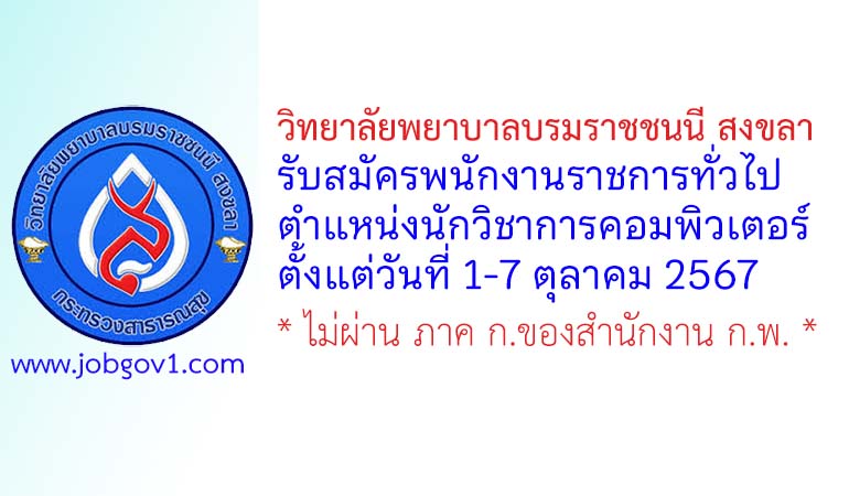 วิทยาลัยพยาบาลบรมราชชนนี สงขลา รับสมัครพนักงานราชการทั่วไป ตำแหน่งนักวิชาการคอมพิวเตอร์ ตั้งแต่วันที่ 1-7 ตุลาคม 2567