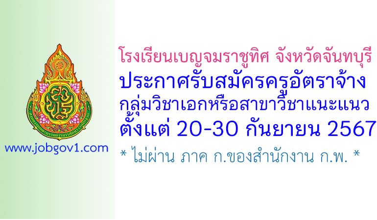 โรงเรียนเบญจมราชูทิศ จังหวัดจันทบุรี รับสมัครครูอัตราจ้าง กลุ่มวิชาเอกหรือสาขาวิชาแนะแนว ตั้งแต่วันที่ 20-30 กันยายน 2567