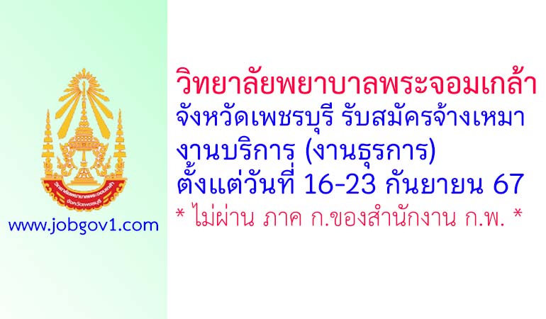 วิทยาลัยพยาบาลพระจอมเกล้า จังหวัดเพชรบุรี รับสมัครจ้างเหมางานบริการ (งานธุรการ) ตั้งแต่วันที่ 16-23 กันยายน 2567