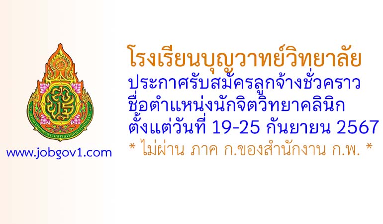 โรงเรียนบุญวาทย์วิทยาลัย รับสมัครลูกจ้างชั่วคราว ตำแหน่งนักจิตวิทยาคลินิก ตั้งแต่วันที่ 19-25 กันยายน 2567
