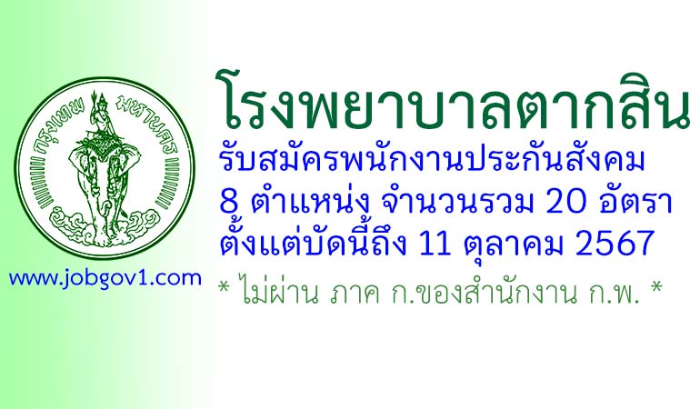 โรงพยาบาลตากสิน รับสมัครพนักงานประกันสังคม 20 อัตรา ตั้งแต่บัดนี้ถึง 11 ตุลาคม 2567