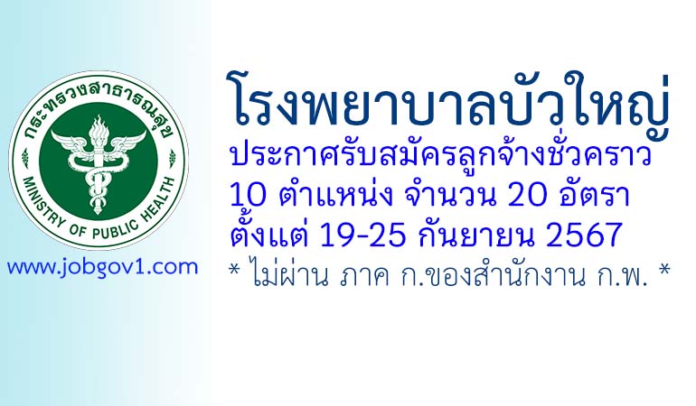 โรงพยาบาลบัวใหญ่ รับสมัครลูกจ้างชั่วคราว 20 อัตรา ตั้งแต่วันที่ 19-25 กันยายน 2567