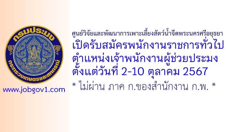 ศูนย์วิจัยและพัฒนาการเพาะเลี้ยงสัตว์น้ำจืดพระนครศรีอยุธยา รับสมัครพนักงานราชการทั่วไป ตำแหน่งเจ้าพนักงานผู้ช่วยประมง ตั้งแต่วันที่ 2-10 ตุลาคม 2567