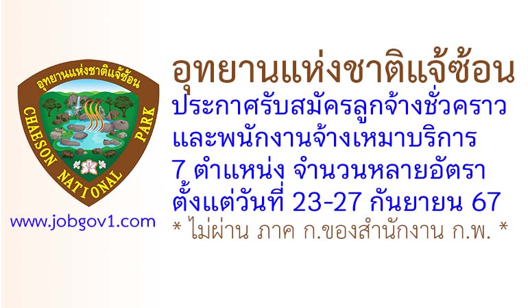 อุทยานแห่งชาติแจ้ซ้อน รับสมัครลูกจ้างชั่วคราวและพนักงานจ้างเหมาบริการ 7 ตำแหน่งหลายอัตรา ตั้งแต่วันที่ 23-27 กันยายน 2567