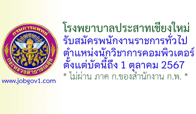 โรงพยาบาลประสาทเชียงใหม่ รับสมัครพนักงานราชการทั่วไป ตำแหน่งนักวิชาการคอมพิวเตอร์ ตั้งแต่บัดนี้ถึง 1 ตุลาคม 2567