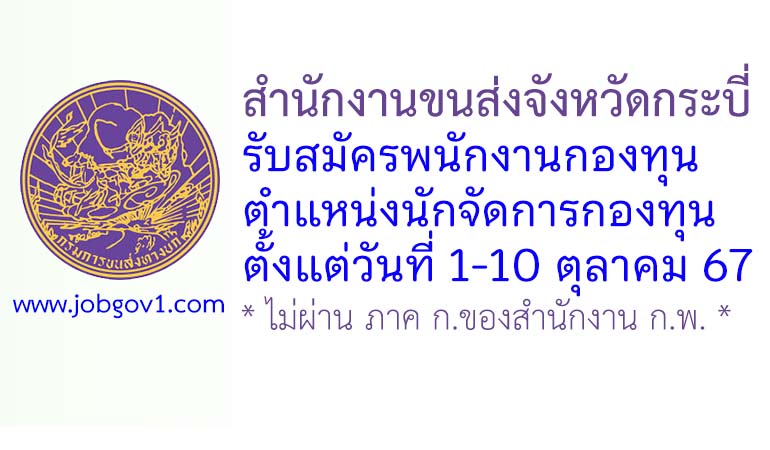 สำนักงานขนส่งจังหวัดกระบี่ รับสมัครบุคคลเพื่อเลือกสรรเป็นพนักงานกองทุน ตำแหน่งนักจัดการกองทุน ตั้งแต่วันที่ 1-10 ตุลาคม 2567