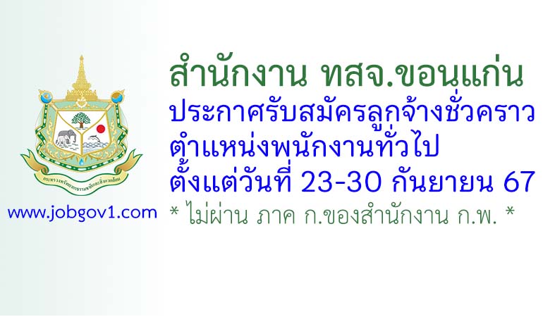 สำนักงาน ทสจ.ขอนแก่น รับสมัครลูกจ้างชั่วคราว ตำแหน่งพนักงานทั่วไป ตั้งแต่วันที่ 23-30 กันยายน 2567