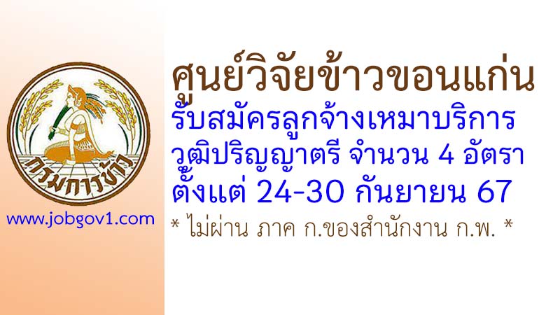 ศูนย์วิจัยข้าวขอนแก่น รับสมัครบุคคลเพื่อเลือกสรรเป็นพนักงานจ้างเหมาบริการ 4 อัตรา ตั้งแต่วันที่ 24-30 กันยายน 2567