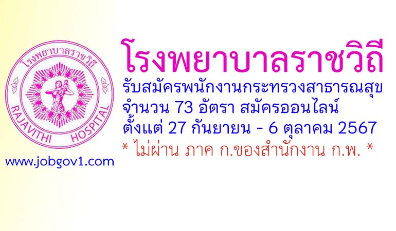 โรงพยาบาลราชวิถี รับสมัครบุคคลเพื่อเลือกสรรเป็นพนักงานกระทรวงสาธารณสุขทั่วไป 73 อัตรา ตั้งแต่ 27 กันยายน – 6 ตุลาคม 2567