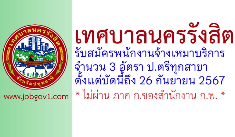 เทศบาลนครรังสิต รับสมัครพนักงานจ้างเหมาบริการ 3 อัตรา ตั้งแต่บัดนี้ถึง 26 กันยายน 2567
