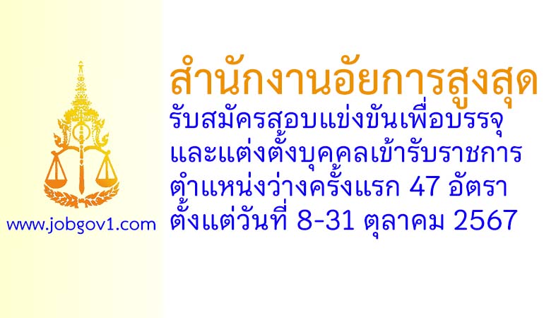 สำนักงานอัยการสูงสุด รับสมัครสอบแข่งขันเพื่อบรรจุและแต่งตั้งบุคคลเข้ารับราชการ 47 อัตรา ตั้งแต่วันที่ 8-31 ตุลาคม 2567