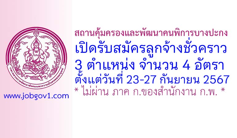 สถานคุ้มครองและพัฒนาคนพิการบางปะกง รับสมัครลูกจ้างชั่วคราว 4 อัตรา ตั้งแต่วันที่ 23-27 กันยายน 2567