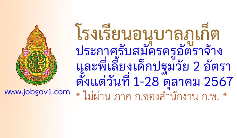 โรงเรียนอนุบาลภูเก็ต รับสมัครครูอัตราจ้าง และพี่เลี้ยงเด็กปฐมวัย 2 อัตรา ตั้งแต่วันที่ 1-28 ตุลาคม 2567