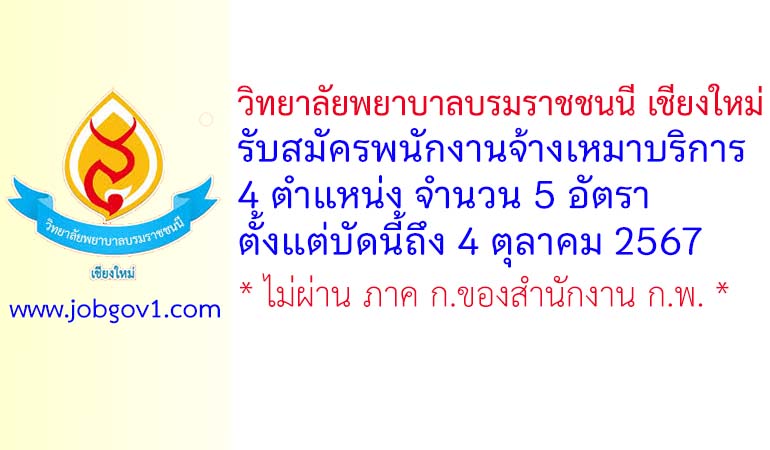 วิทยาลัยพยาบาลบรมราชชนนี เชียงใหม่ รับสมัครพนักงานจ้างเหมาบริการ 5 อัตรา ตั้งแต่บัดนี้ถึง 4 ตุลาคม 2567