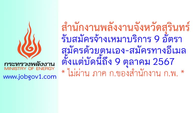 สำนักงานพลังงานจังหวัดสุรินทร์ รับสมัครจ้างเหมาบริการ 9 อัตรา ตั้งแต่บัดนี้ถึง 9 ตุลาคม 2567