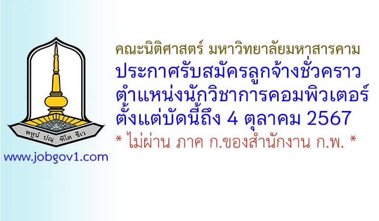 คณะนิติศาสตร์ มหาวิทยาลัยมหาสารคาม รับสมัครลูกจ้างชั่วคราว ตำแหน่งนักวิชาการคอมพิวเตอร์ ตั้งแต่บัดนี้ถึง 4 ตุลาคม 2567